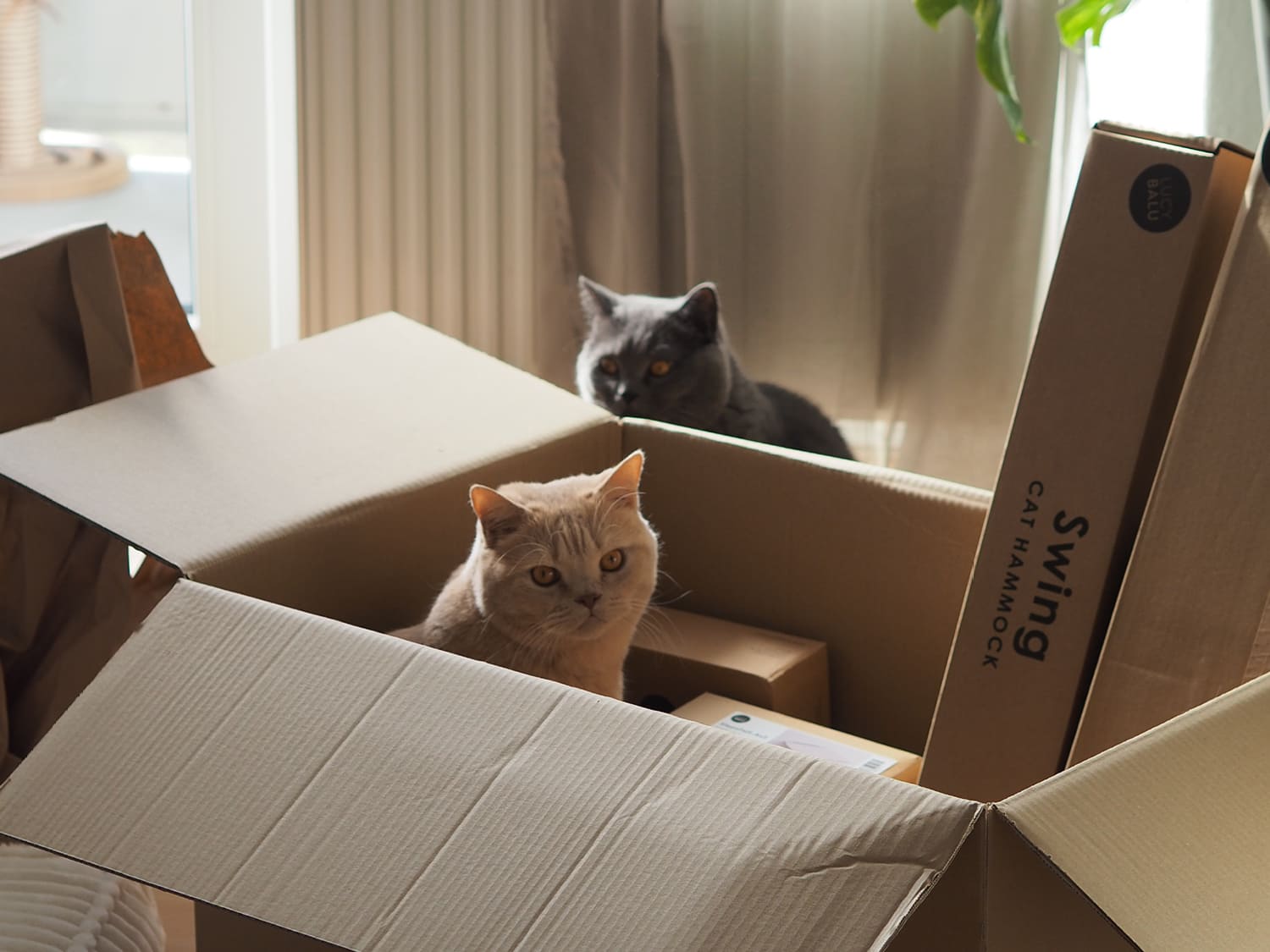 Kartons bieten Sicherheit und eine gemütliche Rückzugsmöglichkeit – sie sind einfach unwiderstehlich für Katzen.