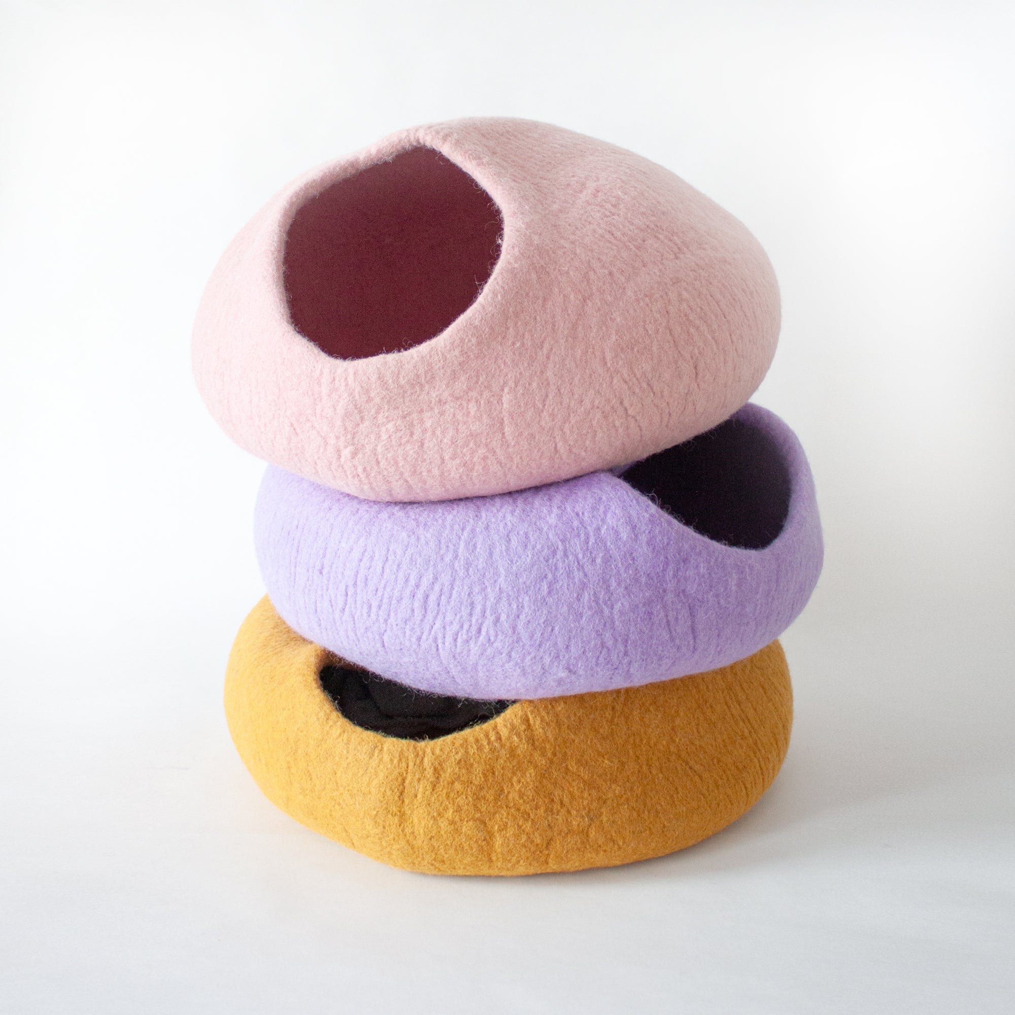 Katzen lieben Rückzugsorte – und wir lieben gutes Design. Deshalb freuen wir uns riesig, euch unsere beliebte LucyBalu Katzenhöhle in neuen, farbenfrohen Varianten vorstellen zu dürfen! Ab sofort gibt es die handgefilzten Höhlen nicht nur in den klassischen Naturtönen, sondern auch in den angesagten Farben Mustard, Lila, Rosa, Sand, Schwarz und Weiß.