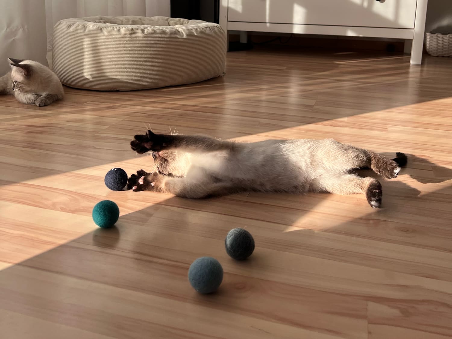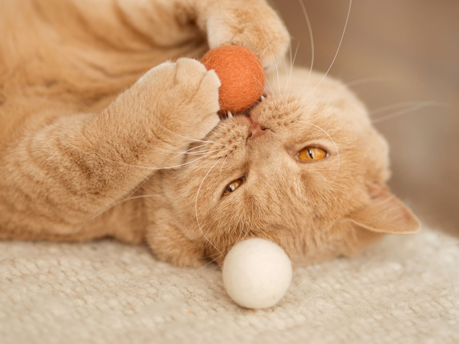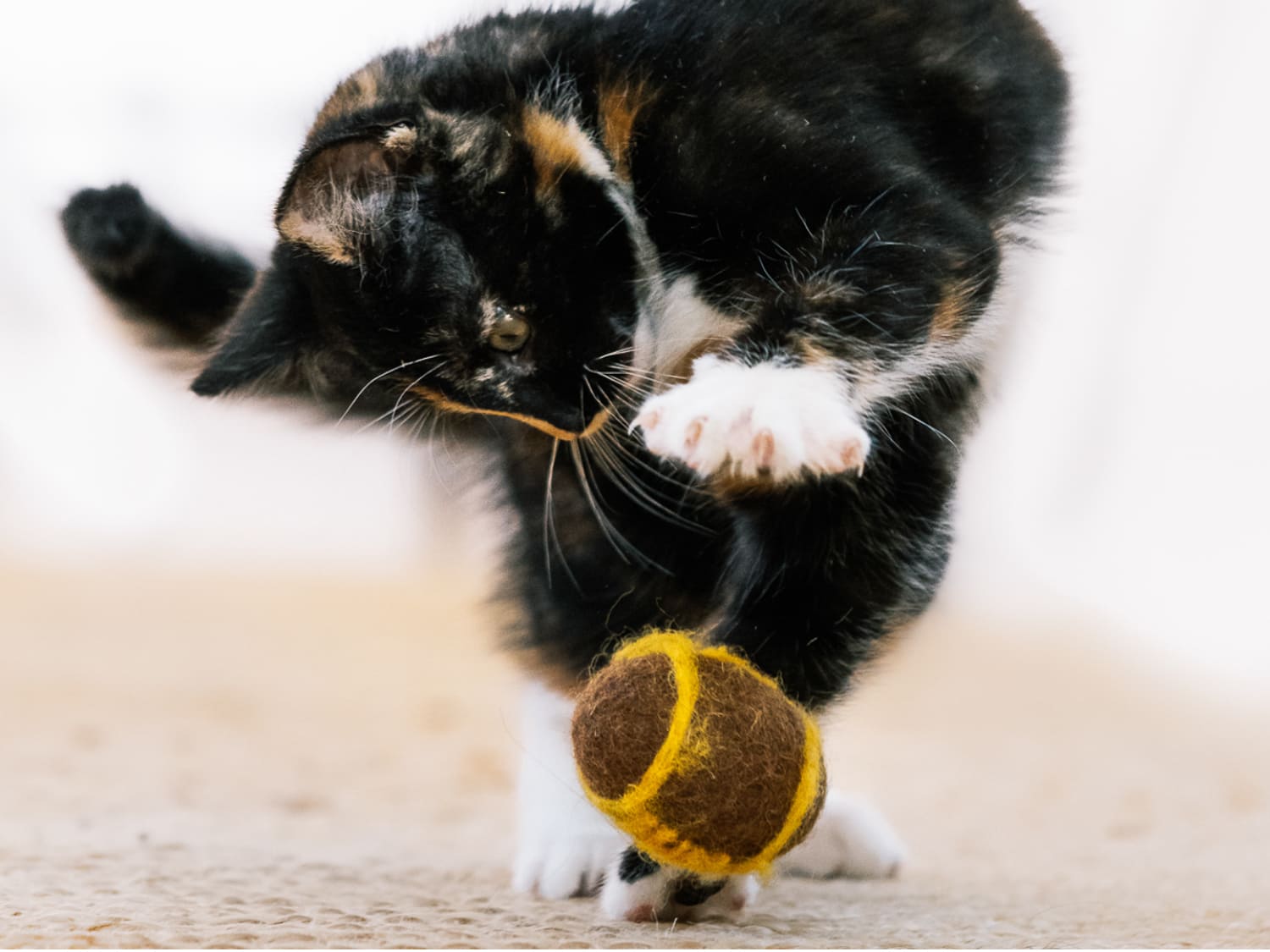 Nicht nur ist gefilzte Wolle robust und völlig ungiftig, sie hat auch einen natürlichen Geruch, der Stubentiger zum Spielen anregt.