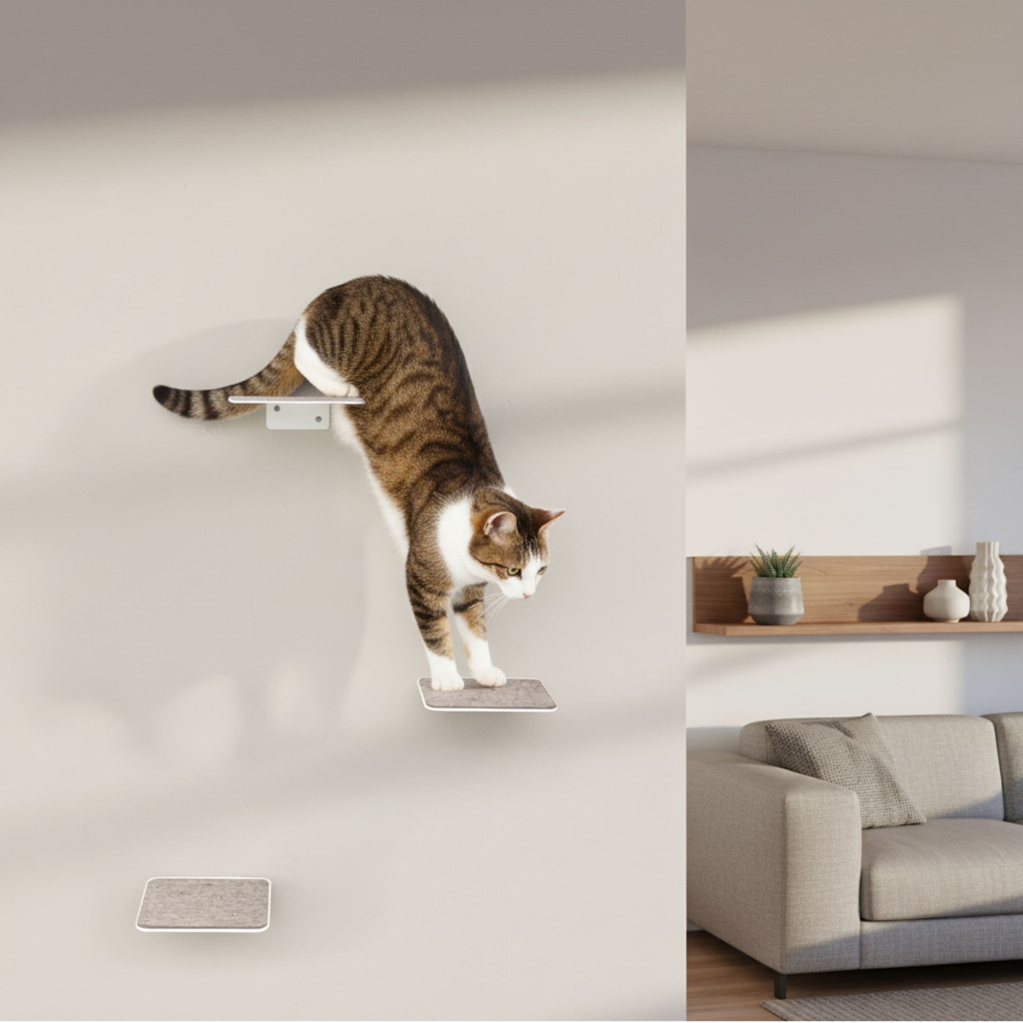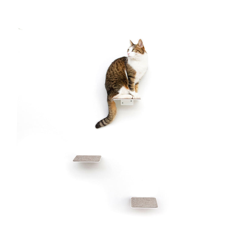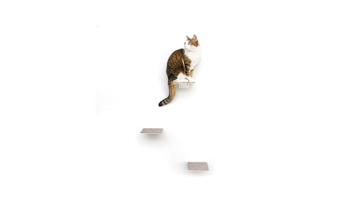 Mit den STEPS Kletterstufen lässt sich ganz einfach ein vertikaler Spielplatz schaffen. DieKatze hat viel mehr Raum zur Verfügung, ohne dass die filigran designten Kletterstufen Raum einnehmen.